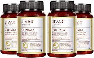 Jiva Triphala Tablet 500mg | 100% Ayurvedic Formulation Promotes Gut Health & Relieves Constipation | Balances 3-Doshas | Excellent For Eye & Hair Issues – 120 Tablets (Pack Of 4)