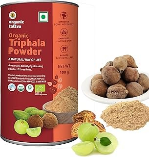 Organic Tattva, Organic Triphala Powder 100 Gram Tin | All Natural,No Artificial Additives Or Harmful Pesticides | for Gastrointestinal Health & Immune System