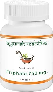 Triphala 750 mg Capsules | Helps With Gut Health, Constipation | 100% Ayurvedic Medicine For Constipation | Regulates Bowel Movement | 60 Capsules