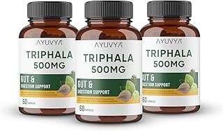 Ayuvya Triphala Churna Capsules – 500mg Pure Triphala Powder Extract – Best Trifala Churn for Digestion, Detox, Weight Management, and Hair Health, 60 Capsules (Pack of 3)