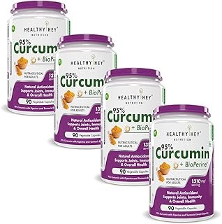 HealthyHey Nutrition Curcumin with Bioperine 1310mg (Ultra Pure) | 90 Vegetable Capsules with Piperine – Pack of 4