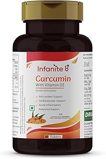 Infanite 8 Curcumin with Vitamin D3 & Grape Seed Extract | 500mg Turmeric Extract with 95% Curcuminoids & Bioperine | Joint, Immunity & Antioxidant Support | 30 Tablets