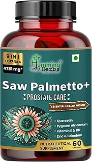 Humming Herbs Saw Palmetto Plus Prostate Support – Enhanced Formula with Quercetin, Turmeric, Pygeum, Vitamins E & B6, Zinc, Selenium for Men’s Health, Capsule