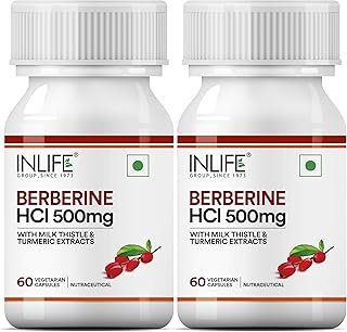 INLIFE Berberine HCL 500mg Supplements with Milk Thistle & Turmeric Extract Support for Men & Women – 60 Veg Capsules (Pack of 2, 120)