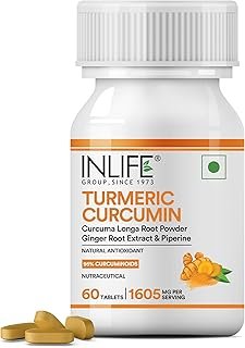INLIFE Curcumin Tablets with Piperine | 95% Curcuminoids with Curcuma Longa Root Powder | Antioxidant & Anti-inflammatory | Turmeric & Ginger Extract, 1605mg – 60 Tablets (Pack of 1)