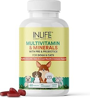 INLIFE Multivitamin for Dog Cat & Pets | Ginseng, Prebiotic & Probiotic Vitamin B12, C, D, E, Zinc & Biotin Supplement for Healthy Growth, Skin & Coat, Immune Support Supplement – 60 Tablets