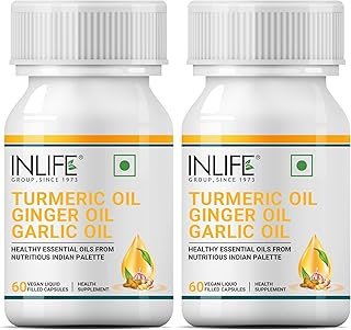 INLIFE Turmeric Oil Ginger Oil Garlic Oil Capsule, Faster Absorption than Extract, Immunity Support, Heart Health Supplement for Adults Men & Women – 60 Liquid Filled Vegetarian Capsules (Pack of 2)