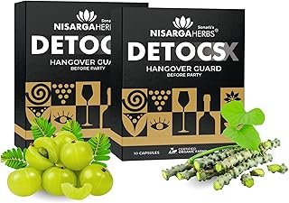 Nisarga Herbs Detocs 10 Capsules (Pack of 2) | Ayurvedic Supplement for Hangover Relief, Liver Detox & Headache Support | Clinically Proven Formula