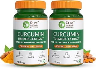 Pure Nutrition Curcumin Turmeric Supplement, 120 Veg Tablets (60 x 2) | 95% Curcuminoids & Black Pepper Extract | High Absorption Formula | Antioxidant Support for Joint, Immune & Inflammatory Health | Natural Wellness Booster