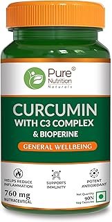 Pure Nutrition Curcumin C3 Complex Supplement – 60 Capsules | Anti Inflammation Turmeric Supplements with Piperine, Amla & Sunthi | High Absorption Inflammatory Support (760mg)