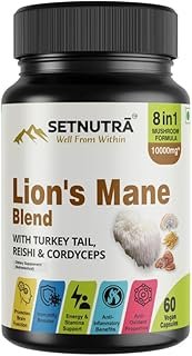 SETNUTRA | Lion’s Mane Blend with Turkey Tail, Reishi&Cordyceps | Cost Saver 8in1 Mushroom Formula For Adults | Promotes Brain Function | Anti-Inflammatory&Anti-Oxidant | Immunity Booster |60 Capsules