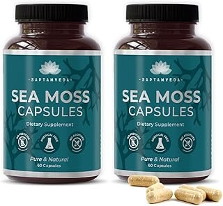 Saptamveda Irish Sea Moss 500MG 60 Capsules (Pack of 2) With Bladderwrack, Burdock, Turmeric & Bioperine Powder | Thyroid Support | Immune Health, Healthy Skin & Joint Support | Formula For Wellness