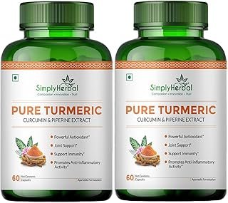 Simply Herbal 800 MG Turmeric Curcumin & Piperine Extract Capsules for Immunity | Immunity Boosters Capsule for Adults | Good for Skin & Joint Pains | Natural and Pure Curcuminoids Capsule, Pack of 2