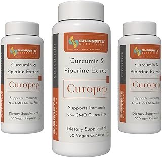 Sharrets Curopep – Curcumin Turmeric Capsules with Piperine 3 x 30’s, Curcuminoids 95%, Turmeric Supplements for Inflammation Skin, Gluten Free, Non GMO