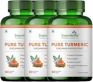 Simply Herbal 800 MG Turmeric Curcumin & Piperine Extract Capsules for Immunity | Immunity Boosters Capsule for Adults | Good for Skin & Joint Pains | Natural and Pure Curcuminoids Capsule, Pack of 3