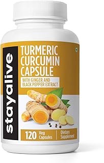 STAY ALIVE Turmeric Curcumin with Black Pepper and Ginger, 2400mg Extract with 95% Curcuminoids, 100% Pure Curcumin Powder with Ginger Root, 120 Capsules, Non-GMO & Gluten Free Supplement