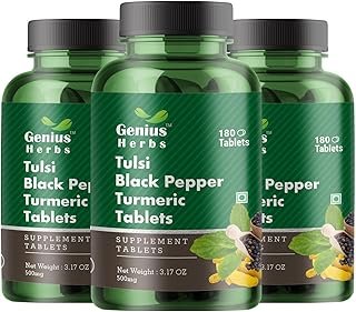 Tulsi Black Pepper Turmeric Tablets – 500mg | Support Overall Health | Helps Joint Health & Flexibility | Promotes Cognitive Function | Pack of 3