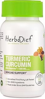 Turmeric Curcumin with Bioperine 60 Capsules | Standardized Turmeric Extract Curcuminoids 95% with Black Pepper Extract & Water Soluble Curcumin | High Absorption | Natural Immune & Joint Support
