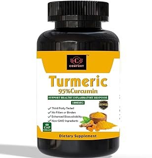 Comfort Organic Turmeric Curcumin Capsules for Joint Pain Relief & Immune Support| Natural Anti-Inflammatory & Antioxidant Supplement| Ayurvedic Herbal Capsules| Boosts Mobility & Overall Wellness