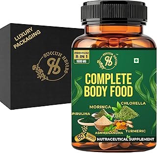 Complete Body Food 1600mg – 60 Veg Capsules | With Spirulina, Moringa, Chlorella, Ashwagandha & Turmeric | Daily Energy, Immunity & Wellness Support
