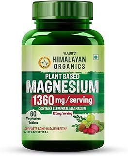 Vlado’s Himalayan Organics Plant Based Magnesium Supplement 1360mg With Turmeric Spirulina, Wheatgrass, Moringa | Clinically Approven | Supports Bone Muscle & Bone Health | Boost Energy Level – 60 Veg Tablets