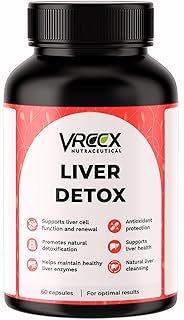 VREEX Liver detox contains Milk Thistle with Dandelion, Kutki, Bhumi Amla & L-Glutathione | Natural Liver Support & Detox Supplement | Herbal Antioxidant Support – 60 Capsules