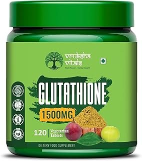 Vruksha Vitals Glutathione Tablets for Skin Whitening 1500 mg – 120 Capsules with Veg Collagen, Biotin, Vitamin E, Vit C, Vit B6 & Curcumin, Milk Thistle, Amla, Grapeseed Extracts – Plant based Supplement