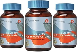 ZEROHARM Ashwagandha Tablets | Helps Reduce Stress, Improve Focus & Boost Energy | Organic Root Extract for Mind & Body Wellness | High Strength Ashwagandha For Men & Women | 60 Veg Tablets – 3 Pack