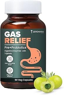 ZEROHARM Gas Relief Capsules | Ayurvedic Pre‑Probiotic & Digestive Enzymes Blend with Triphala (Amla, Haritaki, Bibhitaki), Helps Digestion, May Reduce Bloating & Acidity | 60 Veg Caps for Men,Women